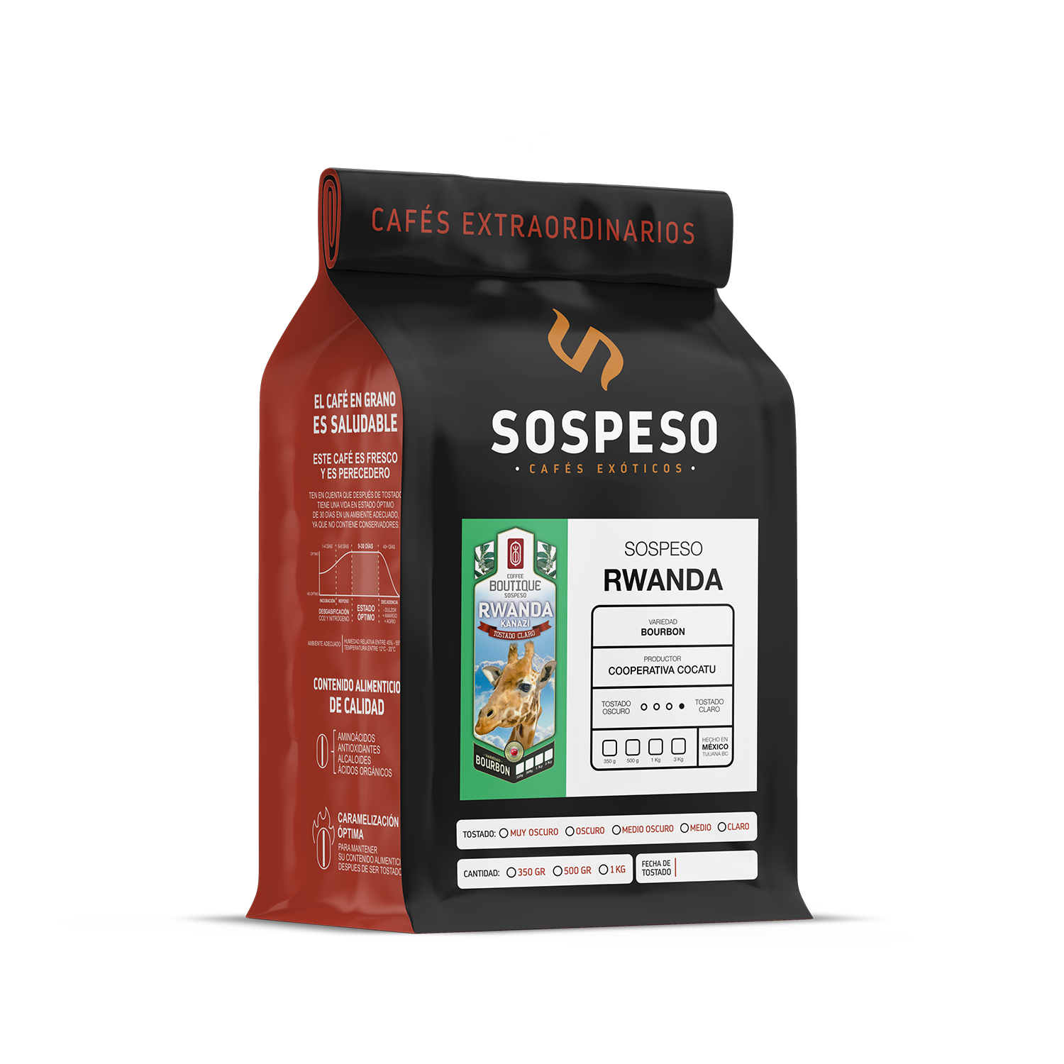 Cada bolsa incluye información sobre su origen, proceso, notas sensoriales y fecha de tueste, para que disfrutes con conciencia y sabor.